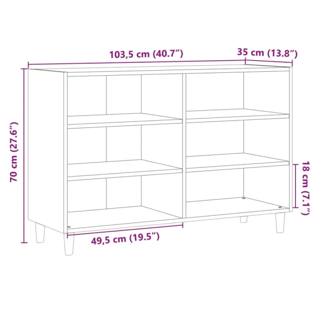 Ta idealna komoda s skandinavskim dizajnom predstavlja praktičen in izjemno dekorativen dodatek za vaš dom. Stabilen in trpežen material: Inženirski les je trpežen in stabilen material z gladko površino, ki je odporen na vlago, krivljenje in cepljenje, zato je zanesljiva izbira za različne projekte.Veliko prostora za shranjevanje: Stranska komoda ima 6 polic in ponuja dovolj prostora za organizirano shranjevanje drobnarij, revij, knjig, DVD-jev in večpredstavnostnih naprav.Lesene noge: Lesene noge dajejo stranski omarici naraven in prijeten videz, hkrati pa zagotavljajo stabilnost.Robustna mizna plošča: Na omarico lahko postavite okrasne predmete, albume s fotografijami ali manjše rastline.Enostavno vzdrževanje: Zaradi gladke površine je omarico enostavno očistiti z vlažno krpo, saj ne potrebuje veliko vzdrževanja. OpozoriloZa preprečitev prevračanja je treba ta izdelek uporabiti s priloženo napravo za pritrditev na steno.Barva: Starinski lesMaterial: Inženirski les, trden les evkaliptusaDimenzije: 103,5 x 35 x 70 cm (D x Š x D)S štirimi nogami iz trdnega evkaliptusovega lesaPotrebno sestavljanje: DaLegal Documents:Več informacij o tem, kako preprečiti prevračanje pohištva, je na voljo tukaj 856450