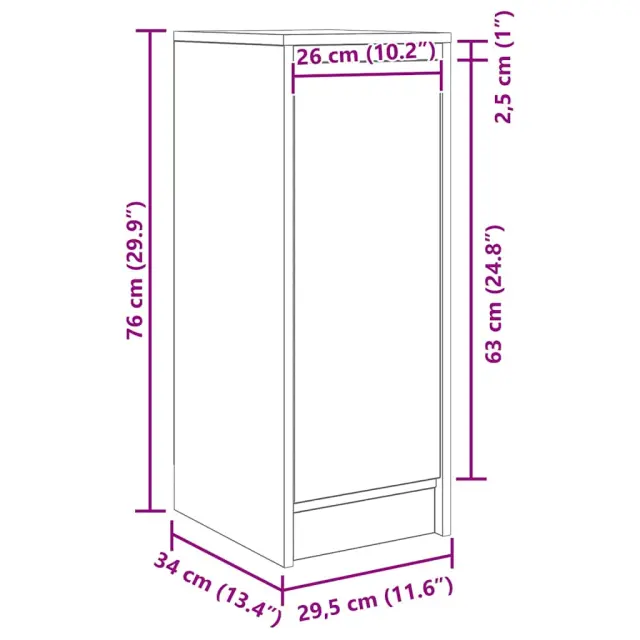 Stranska omara ponuja veliko prostora za shranjevanje, saj pomaga ohranjati red in organiziranost v sobi, hkrati pa združuje praktičnost in estetiko. Stabilen in trpežen material: Inženirski les je trpežen in stabilen material z gladko površino, ki je odporen na vlago, krivljenje in cepljenje, zato je zanesljiva izbira za različne projekte.Veliko prostora za shranjevanje: V omarici je dovolj prostora za shranjevanje jedilnega pribora in drugih gospodinjskih predmetov, da so ti urejeni in na dosegu roke.Praktična vrata: Vrata omare za shranjevanje zagotavljajo zaprt prostor za shranjevanje, da bodo vaše stvari urejene, zaščitene in skrite.Prilagodljiva namestitev vrat: Vrata bifeja lahko namestite na levo ali desno stran glede na vaše osebne navade in udobje.Široka uporaba: To stransko omarico lahko uporabite kot kopalniško ali kuhinjsko omarico ali kot elegantno omarico za shranjevanje v spalnicah, toaletnih prostorih, predsobah, hodnikih in pisarnah, jedilnicah in drugih bivalnih prostorih. Opozorilo:Za preprečitev prevračanja je treba ta izdelek uporabiti s priloženo napravo za pritrditev na steno.Barva: Starinski lesMaterial: Inženirski lesCelotne dimenzije: 29,5 x 34 x 76 cm (Š x G x V)Število vrat: 1Število polic: 1Največja skupna nosilnost: 60 kgNajvečja nosilnost police: 20 kgPotrebno sestavljanje: Da 861614