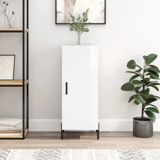vidaXL Komoda visok sijaj bela 34,5x34x90 cm inženirski les