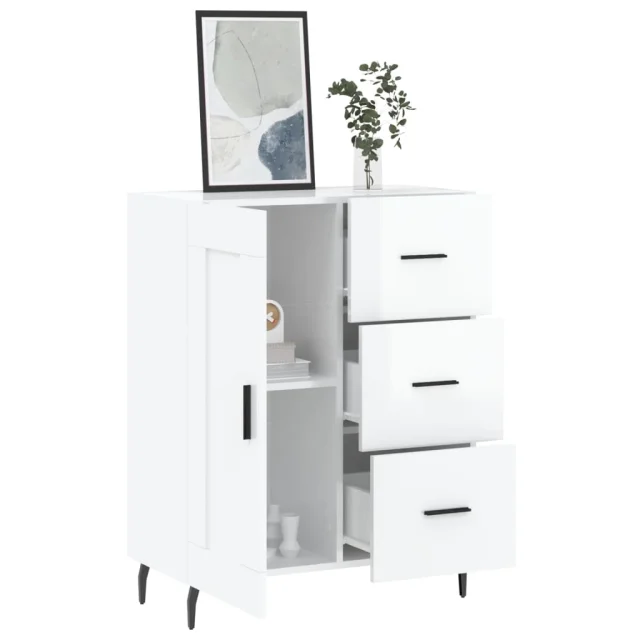 vidaXL Komoda visok sijaj bela 69,5x34x90 cm inženirski les
