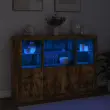 vidaXL Komoda z LED diodami 3 kosi dimljen hrast inženirski les