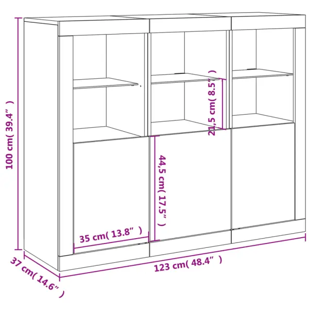Okrasite svojo sobo s temi sodobnimi komodami z LED lučkami, ki se lepo podajo k pohištvu v katerem koli slogu v vaši hiši. Vzdržljiv material: Inženirski les se ponaša z izjemno kakovostjo, gladko površino ter močjo, stabilnostjo in odpornostjo na vlago.Veliko prostora za shranjevanje: Ti bifeji ponujajo veliko prostora za shranjevanje revij, knjig, daljinskih upravljalnikov in drugih majhnih predmetov, da bodo dobro organizirani in na dosegu roke.Razstavna funkcija: Robustna zgornja površina omaric je idealna za razstavljanje okrasnih predmetov, okvirjev za fotografije ali rastlin v lončkih.Prilagodljive LED lučke: Te omare za shranjevanje so opremljene z RGB LED lučmi, ki imajo različne menije za spreminjanje barve svetlobe in samodejno prilagajanje, kar vaš dom okrasi barvito in lepo. Opozorilo:Za preprečitev prevračanja je treba ta izdelek uporabiti s priloženo napravo za pritrditev na steno.Dobro je vedeti:Izdelek ima priključek USB, ki zahteva certificiran vir napajanja 5 V USB (ni priložen).Barva: Dimljeni hrastMaterial: Inženirski les, stekloDimenzije: 123 x 37 x 100 cm (Š x G x V)Potrebno sestavljanje: DaPaket vsebuje:3 x KomodaLegal Documents:Več informacij o tem, kako preprečiti prevračanje pohištva, je na voljo tukaj 3209104