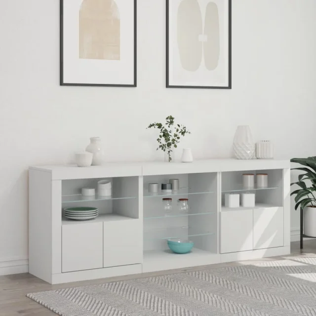 vidaXL Komoda z LED diodami bela 181,5x37x67 cm