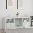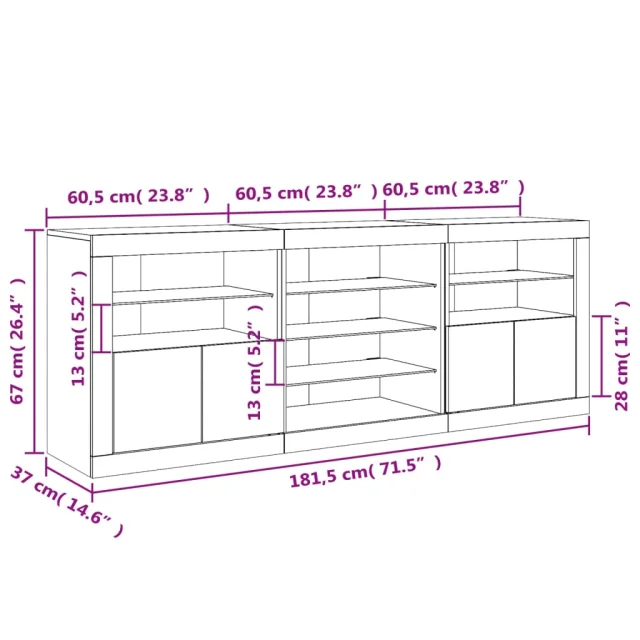 • RGB LED luči: Bife omarica je opremljena z živahnimi RGB LED lučkami. Z različnimi prilagodljivimi meniji lahko brez težav spreminjate barvo luči in celo nastavite njihovo samodejno prilagajanje. Te LED lučke ne le poudarjajo sodoben videz komode, temveč tudi povečujejo njeno modno privlačnost.