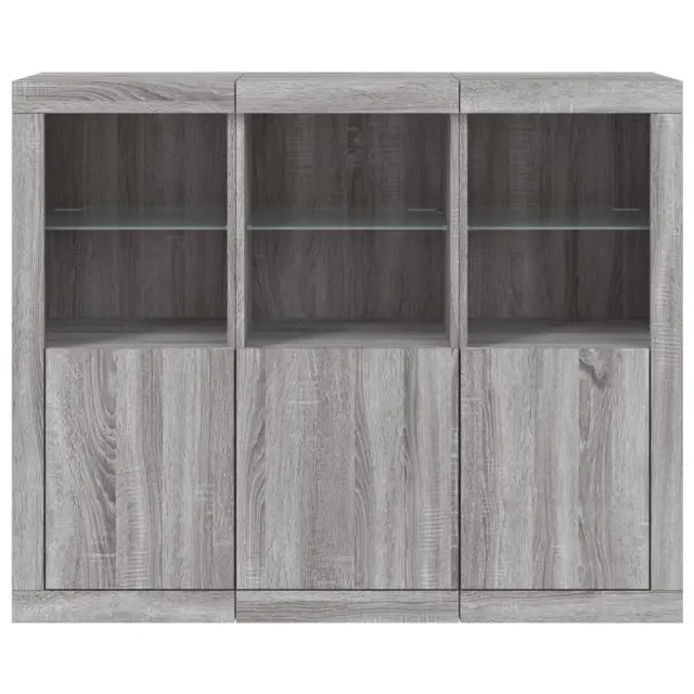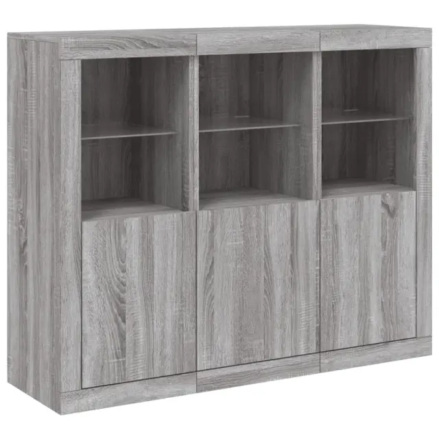 vidaXL Komoda z LED lučkami 3 kosi siva sonoma inženirski les