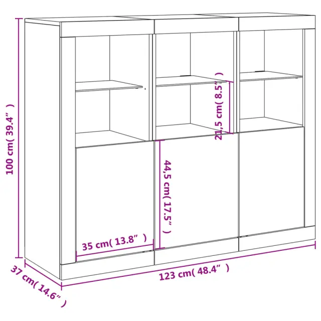 Okrasite svojo sobo s temi sodobnimi komodami z LED lučkami, ki se lepo podajo k pohištvu v katerem koli slogu v vaši hiši. Vzdržljiv material: Inženirski les se ponaša z izjemno kakovostjo, gladko površino ter močjo, stabilnostjo in odpornostjo na vlago.Veliko prostora za shranjevanje: Ti bifeji ponujajo veliko prostora za shranjevanje revij, knjig, daljinskih upravljalnikov in drugih majhnih predmetov, da bodo dobro organizirani in na dosegu roke.Razstavna funkcija: Robustna zgornja površina omaric je idealna za razstavljanje okrasnih predmetov, okvirjev za fotografije ali rastlin v lončkih.Prilagodljive LED lučke: Te omare za shranjevanje so opremljene z RGB LED lučmi, ki imajo različne menije za spreminjanje barve svetlobe in samodejno prilagajanje, kar vaš dom okrasi barvito in lepo. Opozorilo:Za preprečitev prevračanja je treba ta izdelek uporabiti s priloženo napravo za pritrditev na steno.Dobro je vedeti:Izdelek ima priključek USB, ki zahteva certificiran vir napajanja 5 V USB (ni priložen).Barva: Siva sonomaMaterial: Inženirski les, stekloDimenzije: 123 x 37 x 100 cm (Š x G x V)Potrebno sestavljanje: DaPaket vsebuje:3 x KomodaLegal Documents:Več informacij o tem, kako preprečiti prevračanje pohištva, je na voljo tukaj 3209105