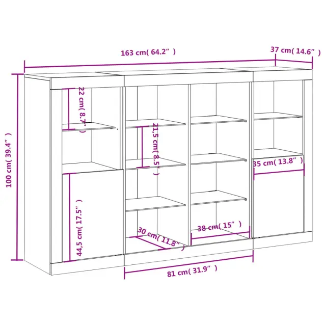 Okrasite svojo sobo s temi sodobnimi komodami z LED lučkami, ki se lepo podajo k pohištvu v katerem koli slogu v vaši hiši. Vzdržljiv material: Inženirski les se ponaša z izjemno kakovostjo, gladko površino ter močjo, stabilnostjo in odpornostjo na vlago.Veliko prostora za shranjevanje: Ti bifeji ponujajo veliko prostora za shranjevanje revij, knjig, daljinskih upravljalnikov in drugih majhnih predmetov, da bodo dobro organizirani in na dosegu roke.Razstavna funkcija: Robustna zgornja površina omaric je idealna za razstavljanje okrasnih predmetov, okvirjev za fotografije ali rastlin v lončkih.Prilagodljive LED lučke: Te omare za shranjevanje so opremljene z RGB LED lučmi, ki imajo različne menije za spreminjanje barve svetlobe in samodejno prilagajanje, kar vaš dom okrasi barvito in lepo. Opozorilo:Za preprečitev prevračanja je treba ta izdelek uporabiti s priloženo napravo za pritrditev na steno.Dobro je vedeti:Izdelek ima priključek USB, ki zahteva certificiran vir napajanja 5 V USB (ni priložen).Barva: Siva sonomaMaterial: Inženirski les, stekloCelotne dimenzije: 163 x 37 x 100 cm (Š x G x V)Potrebno sestavljanje: DaPaket vsebuje:2 x Komoda: 41 x 37 x 100 cm (Š x G x V)1 x Komoda: 81 x 37 x 100 cm (Š x G x V)Legal Documents:Več informacij o tem, kako preprečiti prevračanje pohištva, je na voljo tukaj 3209140