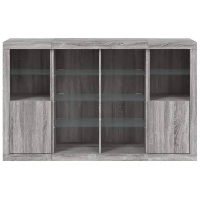vidaXL Komoda z LED lučkami 3 kosi siva sonoma inženirski les