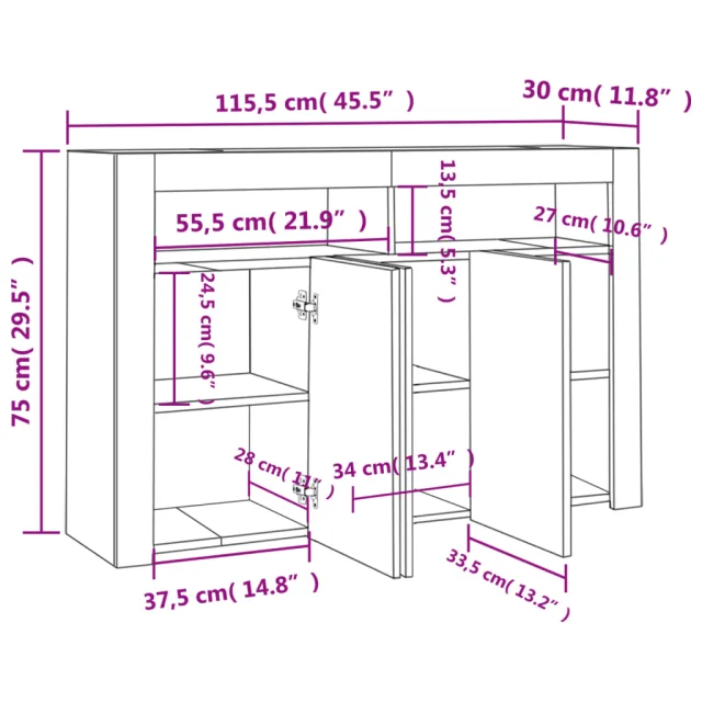 Ta komoda z LED lučkami se ponaša z minimalističnim dizajnom ter predstavlja praktičen in izjemno dekorativen dodatek za vaš dom.