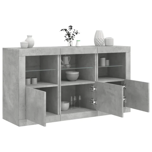 vidaXL Komoda z LED lučkami betonsko siva 123x37x67 cm