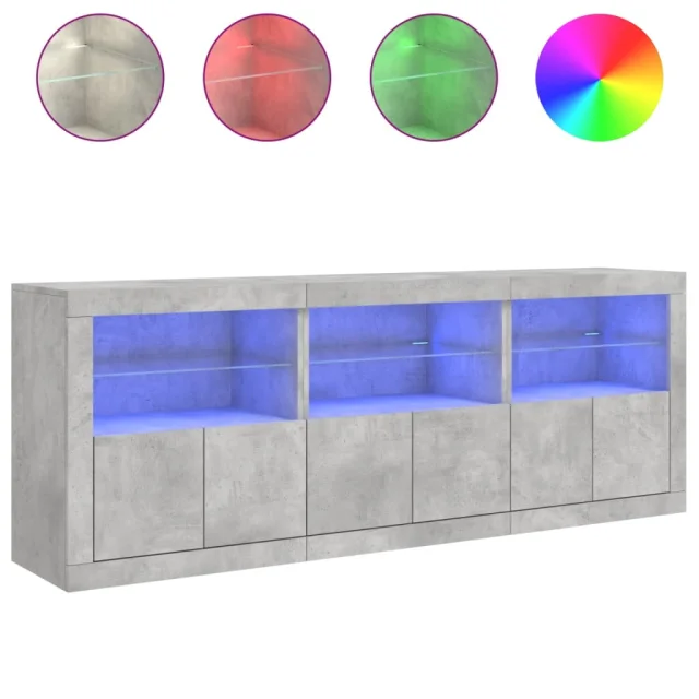 vidaXL Komoda z LED lučkami betonsko siva 181,5x37x67 cm