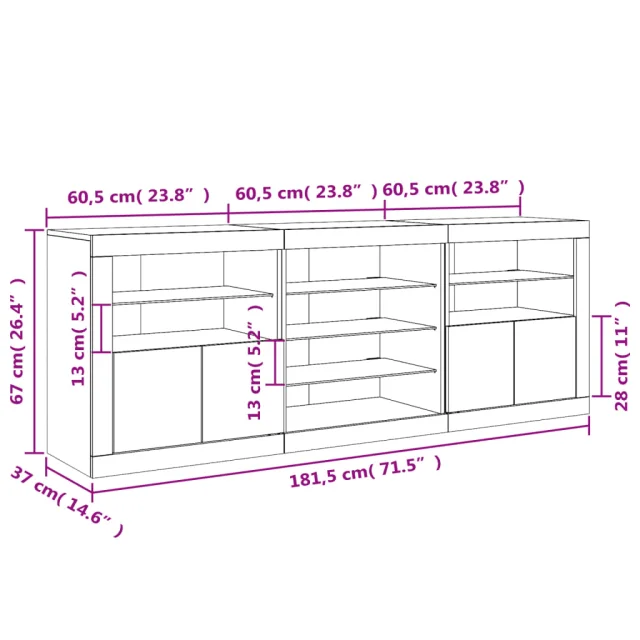 • 3 x Komoda: 60,5 x 37 x 67 cm (Š x G x V)