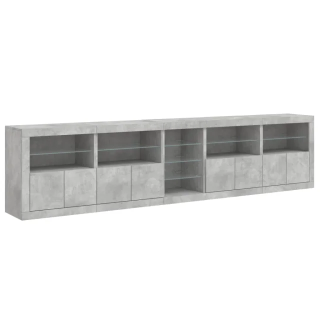 vidaXL Komoda z LED lučkami betonsko siva 283x37x67 cm