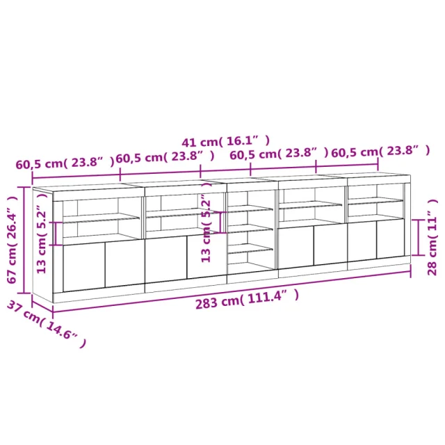 • Celotne dimenzije: 283 x 37 x 67 cm (Š x G x V)