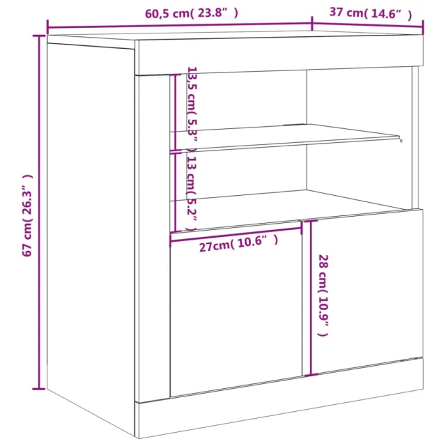 vidaXL Komoda z LED lučkami dimljen hrast 60,5x37x67 cm