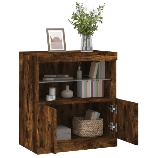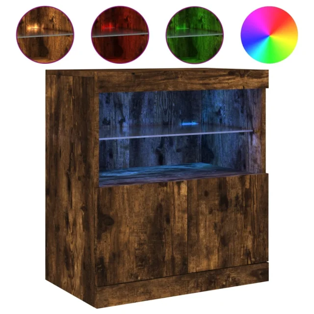 vidaXL Komoda z LED lučkami dimljen hrast 60x37x67 cm