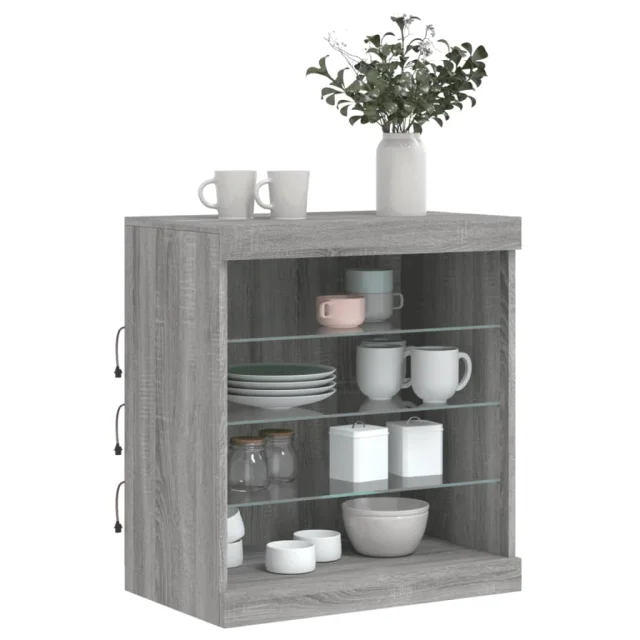 vidaXL Komoda z LED lučkami siva sonoma 60,5x37x67 cm
