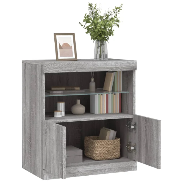 vidaXL Komoda z LED lučkami siva sonoma 60x37x67 cm