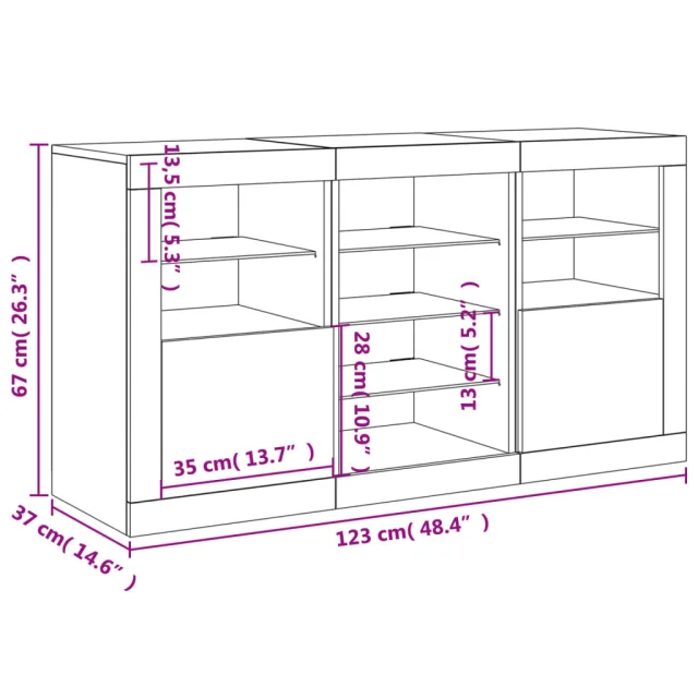 • Celotne dimenzije: 123 x 37 x 67 cm (D x Š x V)