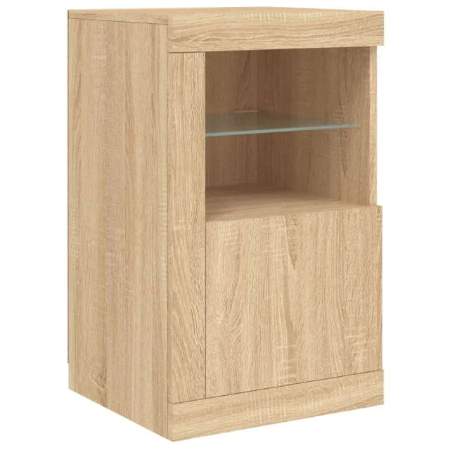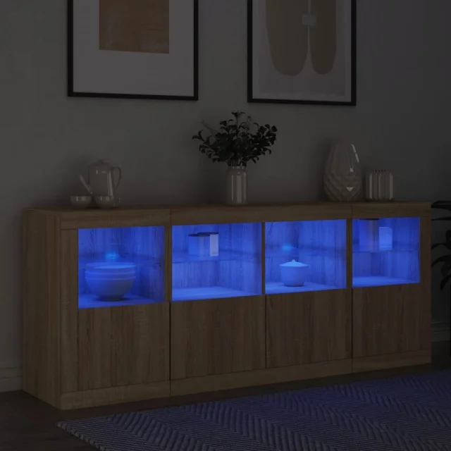 • RGB LED luči: Bife omarica je opremljena z živahnimi RGB LED lučkami. Z različnimi prilagodljivimi meniji lahko brez težav spreminjate barvo luči in celo nastavite njihovo samodejno prilagajanje. Te LED lučke ne le poudarjajo sodoben videz komode, temveč tudi povečujejo njeno modno privlačnost.