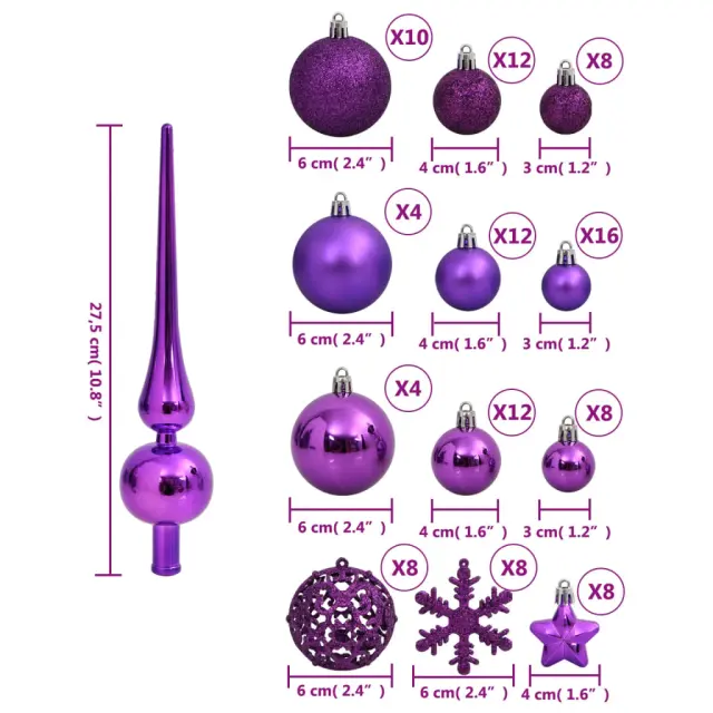 vidaXL Komplet božičnih bučk 111 kosov vijolične polistiren