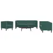 Ta sedežna garnitura chesterfield je odličen prostor za klepetanje, branje, gledanje televizije ali preprosto sprostitev. Namenjen je biti osrednja točka v vašem domu. Mehak in udoben material: Vlažna tkanina iz žameta ima mehko in gladko površino, ki zagotavlja prijeten občutek ter vam zagotavlja toploto in popolno udobje.Udobno sedenje: Kavč je zelo udoben z debelo oblazinjenimi sedeži, nasloni za roke in hrbtnimi blazinami. Vključeni vzglavniki popestrijo vaš dekor in povečajo udobje, ko sedite ali ležite.Stil chesterfield: S klasičnim naslonjalom za hrbet z gumbi in nasloni za roke ter enotno višino naslonjala in naslonov za roke bo popestril vsak prostor, saj zagotavlja slog in udobje.Podporne noge: Fotelj je podprt s čvrstimi nogami, ki zagotavljajo njegovo stabilnost, varnost in trdnost.Barva: Temno zelenaMaterial: Žamet (100 % poliester), vezan les, trden lesMaterial polnila: PenaMaksimalna nosilnost: 110 kgPotrebno sestavljanje: DaFotelj:Celotne dimenzije: 71 x 74,5 x 70,5 cm (Š x G x V)Širina sedeža: 55 cmGlobina sedeža: 59,5 cmVišina sedeža, merjena od tal: 41,5 cmVišina naslonjala za roke od tal: 70,5 cmKavč dvosed:Celotne dimenzije: 174 x 74,5 x 70,5 cm (Š x G x V)Širina sedeža: 158 cmGlobina sedeža: 59 cmVišina sedeža, merjena od tal: 41,5 cmVišina naslonjala za roke od tal: 70,5 cmKavč trosed:Celotne dimenzije: 194 x 74,5 x 70,5 cm (Š x G x V)Širina sedeža: 178 cmGlobina sedeža: 59 cmVišina sedeža, merjena od tal: 41,5 cmVišina naslonjala za roke od tal: 70,5 cmDimenzije vzglavnika: 15 x 51 cm (premer x V)Paket vsebuje:1 x Fotelj1 x Kavč dvosed1 x Kavč trosed4 x Vzglavnik 3209283