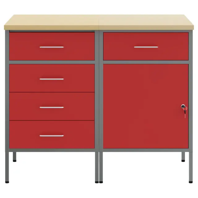 Ta industrijska delovna omara je na voljo v privlačnih rdečih in sivih barvah, ki so stylish in praktične za vsako garažo ali delavnico. Je nanašena iz jekla in inženirskega lesa, kar omogoča varno shranjevanje tvojega orodja in potrebščin ter ohranjanje reda.