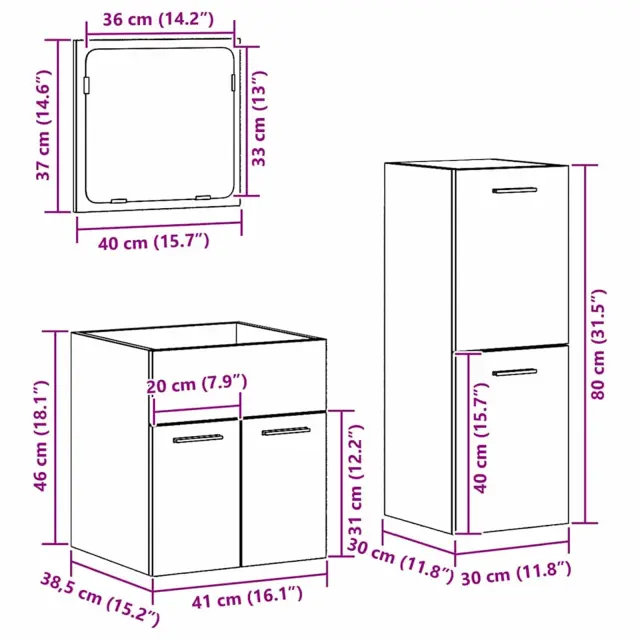 Ta leseni komplet kopalniškega pohištva združuje preprostost in praktičnost, kar ga naredi idealnega za osvežitev vaše kopalnice. Njegov sodoben stil se brez težav prilega tudi majhnim prostorom, kar vam omogoča tako slog kot funkcionalnost za mestno življenje ali minimalistične okuse. Vsak kos pomaga ohranjati red, kar je odlična izbira za posodobitev stare kopalnice ali dokončanje elegantne prenove.