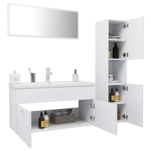vidaXL Komplet kopalniškega pohištva bele barve inženirski les