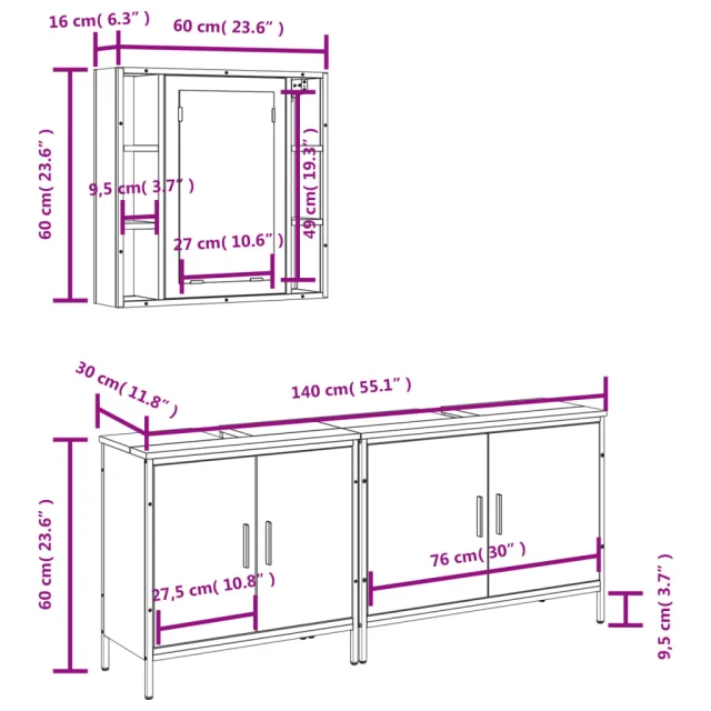 vidaXL Komplet kopalniških omaric 3-delni dimljen hrast inženirski les
