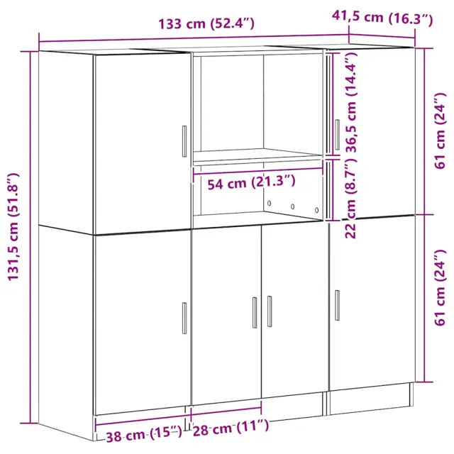 Ta komplet kuhinjskih omaric je idealna izbira za urejeno in dosegljivo shranjevanje kuhinjskih potrebščin.