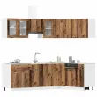 Ta 11-delni komplet kuhinjskih omaric z elegantnim dizajnom bo optimiziral prostor v vaši kuhinji in nudil veliko prostora za shranjevanje vaših osebnih stvari! Stabilen in trpežen material: Inženirski les je trpežen in stabilen material z gladko površino, ki je odporen na vlago, krivljenje in cepljenje, zato je zanesljiva izbira za različne projekte.Veliko prostora za shranjevanje: V kompletu kuhinjskih omaric je veliko predalčkov in dovolj prostora za shranjevanje sklede, krožnikov, loncev in drugih kuhinjskih pripomočkov.Nastavljive noge: Spodnje omarice imajo nastavljive noge, ki jih lahko prilagodite po višini, da ustrezajo vaši kuhinjski postavitvi.Enostavno vzdrževanje: Zaradi gladke površine je te kuhinjske omarice enostavno očistiti z vlažno krpo in zahtevajo manj vzdrževanja. Opozorilo:Za preprečitev prevračanja je treba ta izdelek uporabiti s priloženo napravo za pritrditev na steno. Dobro je vedeti:Vijak(i) in čep(i) za notranjost stene ni(so) priložen(i). Poiščite in uporabite vijak(e) in čep(e), primerne za vaše stene. Če ste negotovi, poiščite strokovni nasvet. Pozorno preberite in sledite vsakemu koraku v navodilih.Delovna plošča, pomivalno korito in pipa niso vključeni v dobavo.Barva: Starinski lesMaterial: Inženirski les in stekloPotrebno sestavljanje: DaPaket vsebuje:1 x Omarica za umivalnik: 80 x 46 x 81,5 cm (Š x G x V)1 x Omarica s predali: 30 x 46 x 81,5 cm (Š x G x V)1 x Omarica s predali: 80 x 46 x 81,5 cm (Š x G x V)1 x Viseča omarica: 50 x 31 x 60 cm (Š x G x V)1 x Viseča omarica: 60 x 31 x 60 cm (Š x G x V)1 x Kuhinjska omarica: 75,5 x 75,5 x 81,5 cm (Š x G x V)1 x Viseča steklena omarica: 40 x 31 x 60 cm (Š x G x V)1 x Viseča omarica: 60 x 31 x 40 cm (Š x G x V)1 x Viseča steklena omarica: 80 x 31 x 60 cm (Š x G x V)1 x Viseča kotna omarica: 57 x 57 x 60 cm (Š x G x V)1 x plošča za pomivalni stroj: 60 x 1,5 x 67 cm (Š x G x V) 3328577