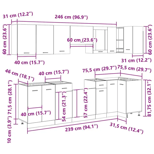 vidaXL Komplet kuhinjskih omaric 11-delni starinski les inženirski les