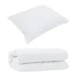 Ta moderno zasnovan pokrivač prinaša stil in udobje v tvojo spalnico. Idealno je oblikovan za tiste, ki cenijo preprostost in eleganco. Njegova gladka tekstura in mehkoba ustvarita vzdušje luksuznega spanja, odličnega za minimalistične prostore. Set posteljnine iz mikrovlaken v elegantni beli barvi prinaša čistost in mir. Z prešito zasnovo ti nudi dodatno toploto, kar je super za vsak letni čas. Udobno ovije vse uporabnike, kar pomeni miren spanec vsako noč. Kompresijsko pakiran je za enostavno rokovanje in kmalu po razpakiranju je že pripravljen, da okrasi tvoje postelje s svojim šik videzom.