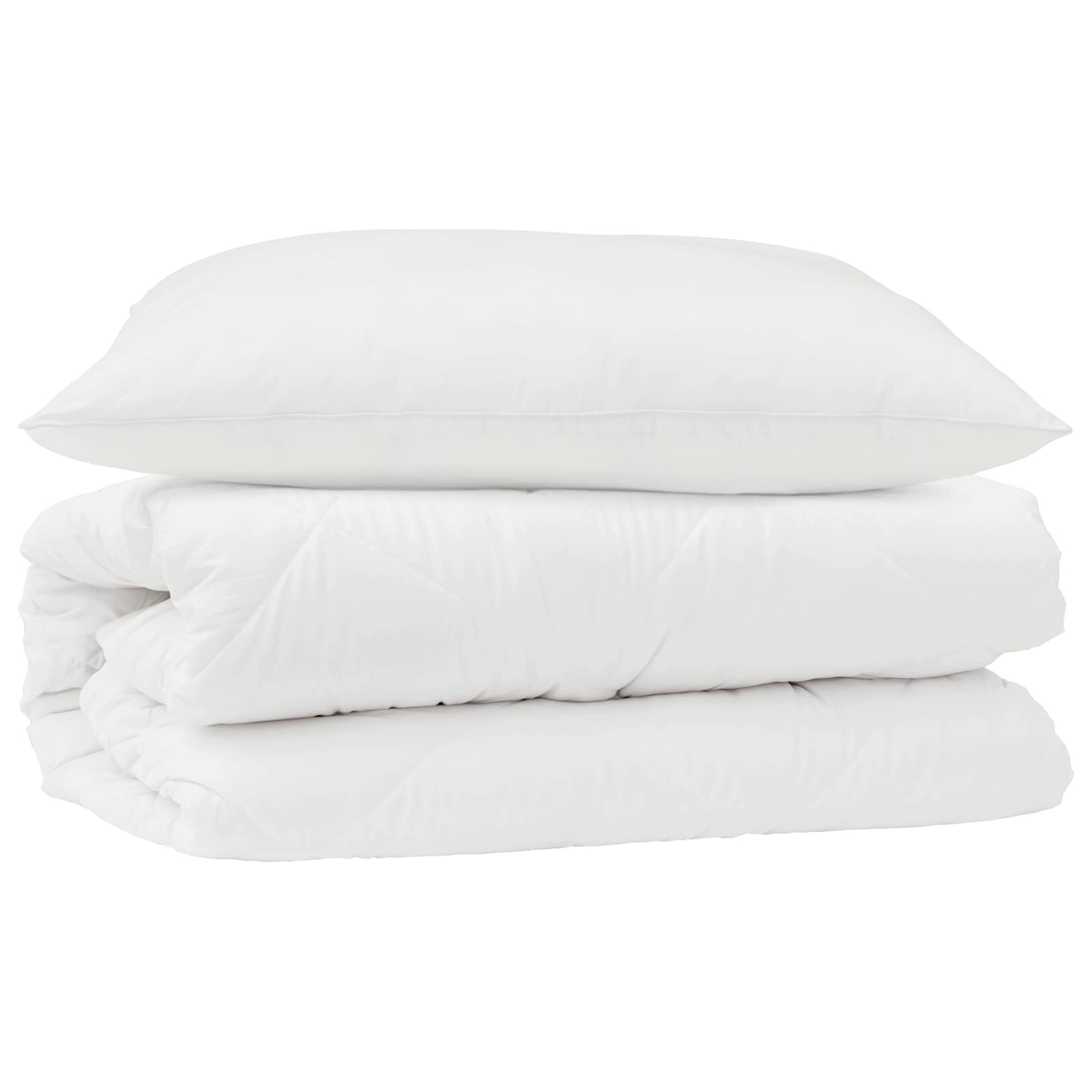 • Maksimalno udobje: Z mikrovlaknenim polnjenjem set nudi občutek, podoben puhastemu peresniku, zagotavljajoč mehko in podporno izkušnjo. Zračna vlakna skrbijo za toploto in stalno temperaturo, kar ga dela primerno za vse letne čase.