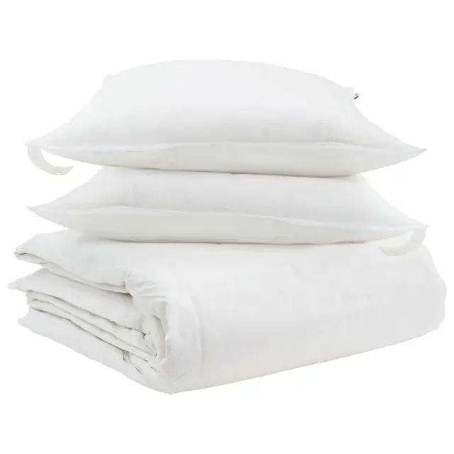 • Vsestranost komponent: V kompletu so mehke blazine, izdelane iz vrhunskega bombaža, s pernatim polnjenjem za dodatno udobje in podporo. Bela barva blazin se odlično ujema z minimalistično estetiko in se brez težav zlije z modernimi in preprostimi dekorjem.