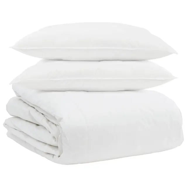 • Enostavna nega Zasnovano za zaposlene, je ta set primeren za pranje v pralnem stroju pri 40°C, kar omogoča preprosto vzdrževanje. Da ohraniš njegovo polnost, ga le razpakiraj, nežno potapkaj in pusti, da se vrne v prvotno obliko.
