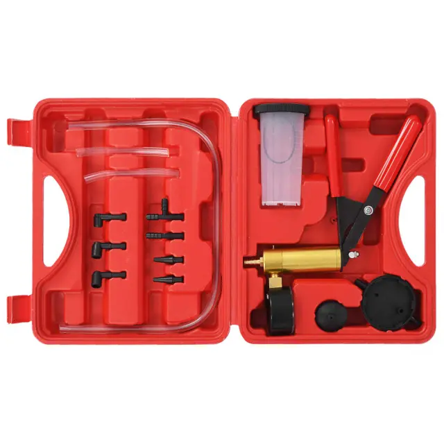 Ta uporabniku prijazen komplet vakuumske črpalke in naprave za odzračevanje zavor kombinira dve funkciji v eni napravi. Idealna je za pregledovanje napetosti cevi, ventilov, odzračevanje in prezračevanje zavornega sistema ali sistemov hidravličnih sklopk.