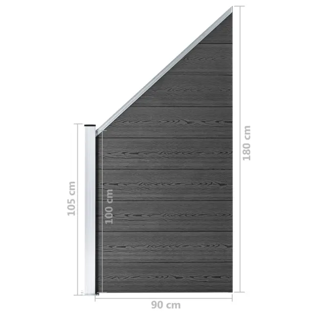 vidaXL Komplet ograjnih panelov WPC 965x(105-186) cm črn