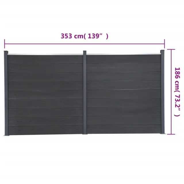 vidaXL Komplet ograjnih panelov siv 353x186 WPC