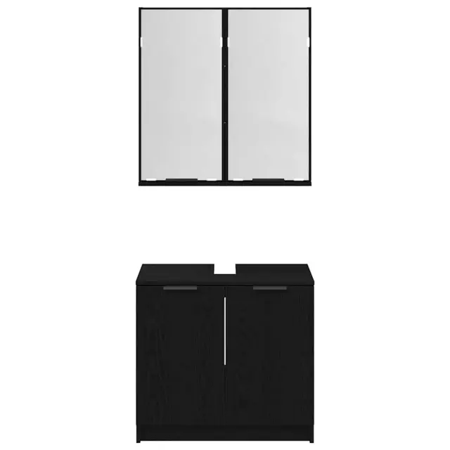 vidaXL Komplet omaric za kopalnico s polico 2 pcs Črna Orehovina