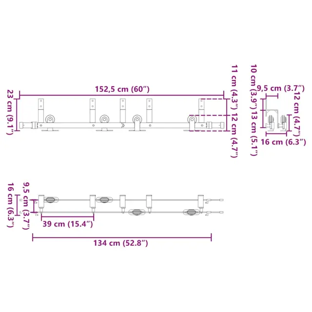 • Skupna dolžina drsnih vodil: 152,5 cm