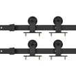 Komplet nosilcev za drsna vrata vsebuje 2 visokokakovostni drsni vodili (največja dolžina 183 cm) in 2 valja, odporna na obrabo. Drsni vodili sta narejeni iz jekla z oblogo iz umetne mase, ki je trdno, vzdržljivo in trpežno. Zaradi notranjih ležajev bodo vaša vrata gladko in tiho drsela. Prav tako sta priloženi blokadi za vrata, ki preprečujeta valjem, da padejo iz vodil, medtem ko bosta gumijasti tesnili ublažili udarec valjev ter zmanjšali hrup. Poleg tega je komplet vodil hlevskih drsnih vrat opremljen z visokokakovostnim talnim vodilom, ki stabilizira gibanje vrat.