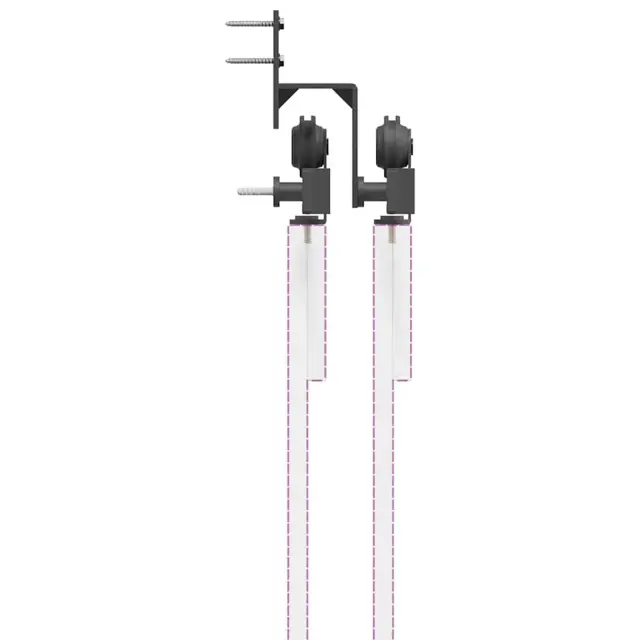 S tem kompletom okovja za drsna vrata lahko preprosto namestite dvojne vodila za par vrat, ki se pomikajo pred in za seboj.