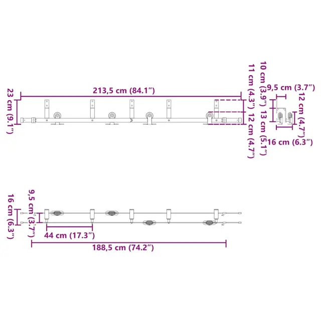 • Skupna dolžina drsnih vodil: 213,5 cm