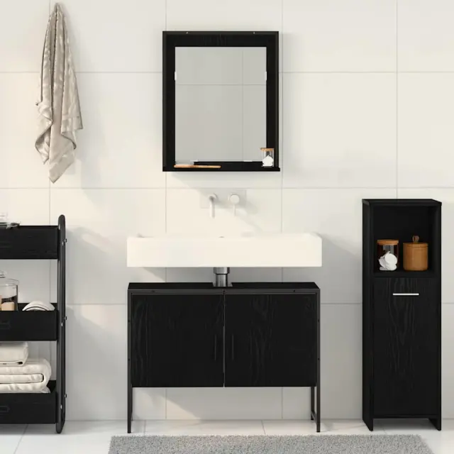 Ta moderna kopalniška pohištvena postavitev je elegantna rešitev za organizacijo vaših kopalniških potrebščin. Zasnovan s čistimi linijami in gladkimi površinami, ta set prinaša moderno estetiko in preoblikuje vsako kopalnico v funkcionalno mesto. Idealno je za družine in posameznike, set vključuje šik komponente, ki navdušijo vaše goste, hkrati pa zagotavljajo dovolj prostora za nujnosti. Njegov poliran dizajn dobro sovpada z modernimi domovi in doda pridih odličnosti vaši vsakodnevni rutini. Ta vsestranski set izboljšuje vzdušje vaše kopalnice, ustvarja mirno okolje za sprostitev.