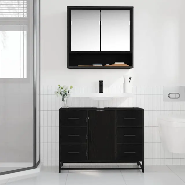 vidaXL Komplet pohištva za kopalnico 2 pcs Črni hrast 80 x 33 x 60 cm
