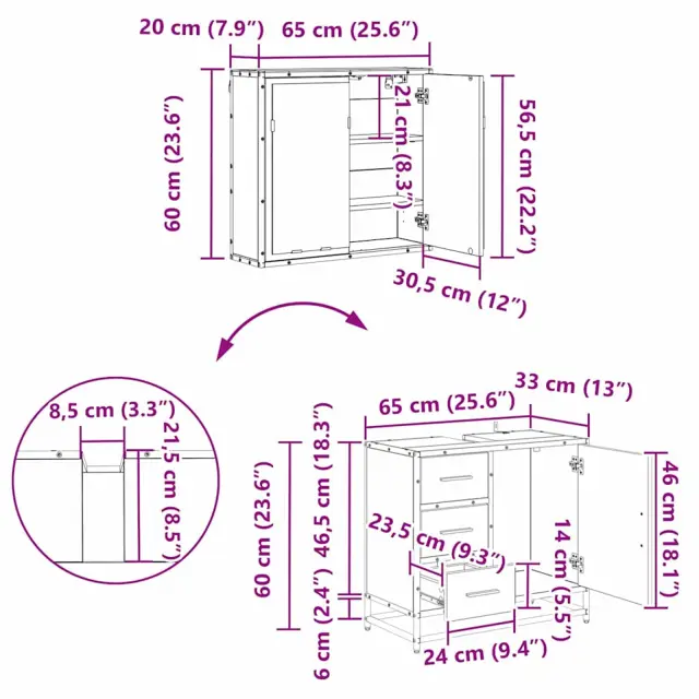 vidaXL Komplet pohištva za kopalnico 2 pcs Črni hrast 65 x 33 x 60 cm