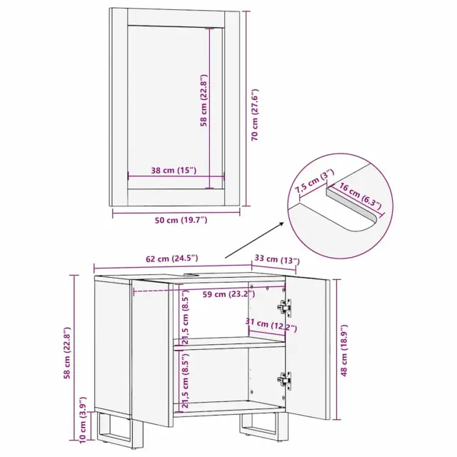 Ta moderna kopalniška garnitura s preprostim in funkcionalnim dizajnom združuje čiste linije in minimalistične detajle. Njen sleek in sodoben videz izboljšuje mirnost kopalnice ter nudi veliko prostora za vse vaše toaletne potrebščine in brisače.