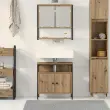 • Moderna zasnova iz inženirskega lesa: Ta set, izdelan iz inženirskega lesa, združuje trdnost in moderno estetiko. Njegova topla rjava barva doda domačnost vsakemu kopalniškemu prostoru.